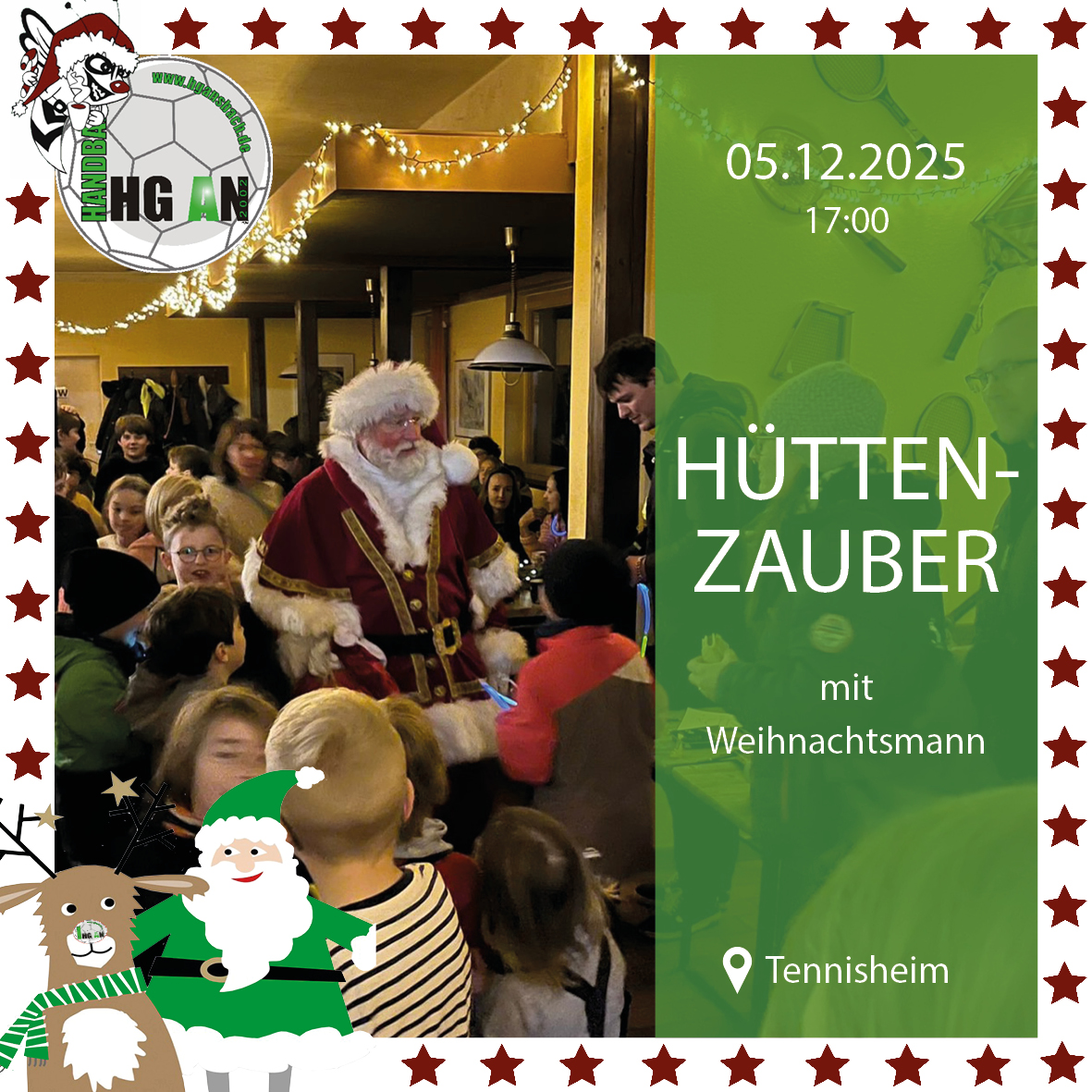 auch dieses Jahr möchten wir gemeinsam mit Euch und Euren Teams die Vorweihnachtszeit feiern – und laden herzlich zu unserem HG-Hüttenzauber am 05. Dezember ein!